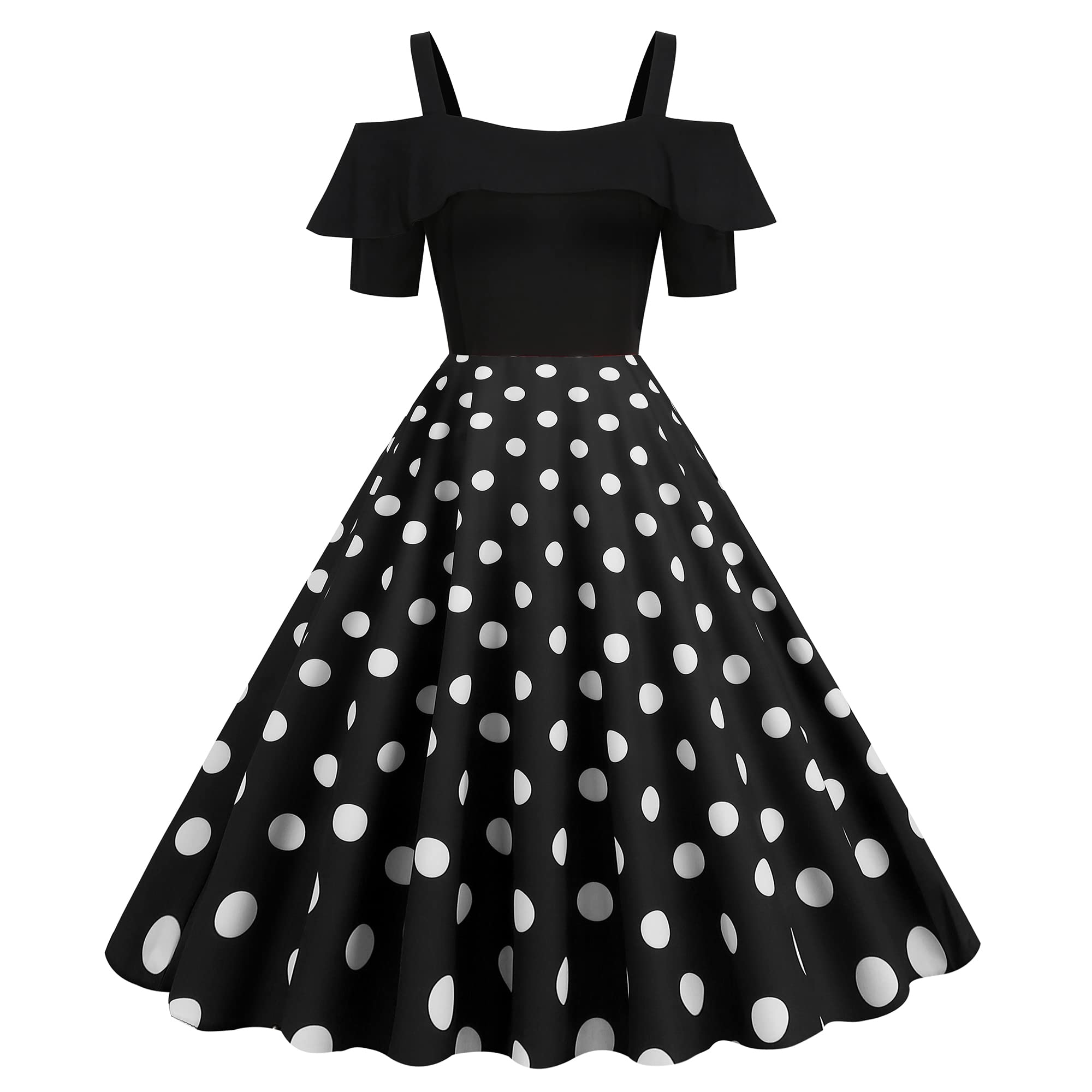 Home Robes vintage Femme Robe Vintage des Années 1950 avec Bretelles Volantes Pois